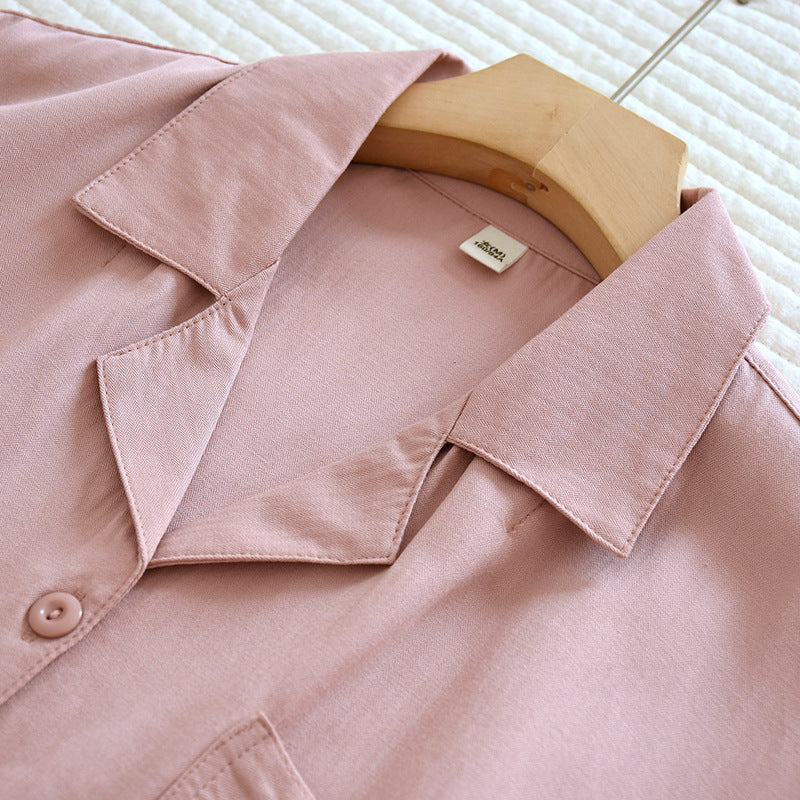 Amira Sleepwear Set in a captivating solid pink colour features a carefully designed pattern that adds a touch of style to your pyjamas.