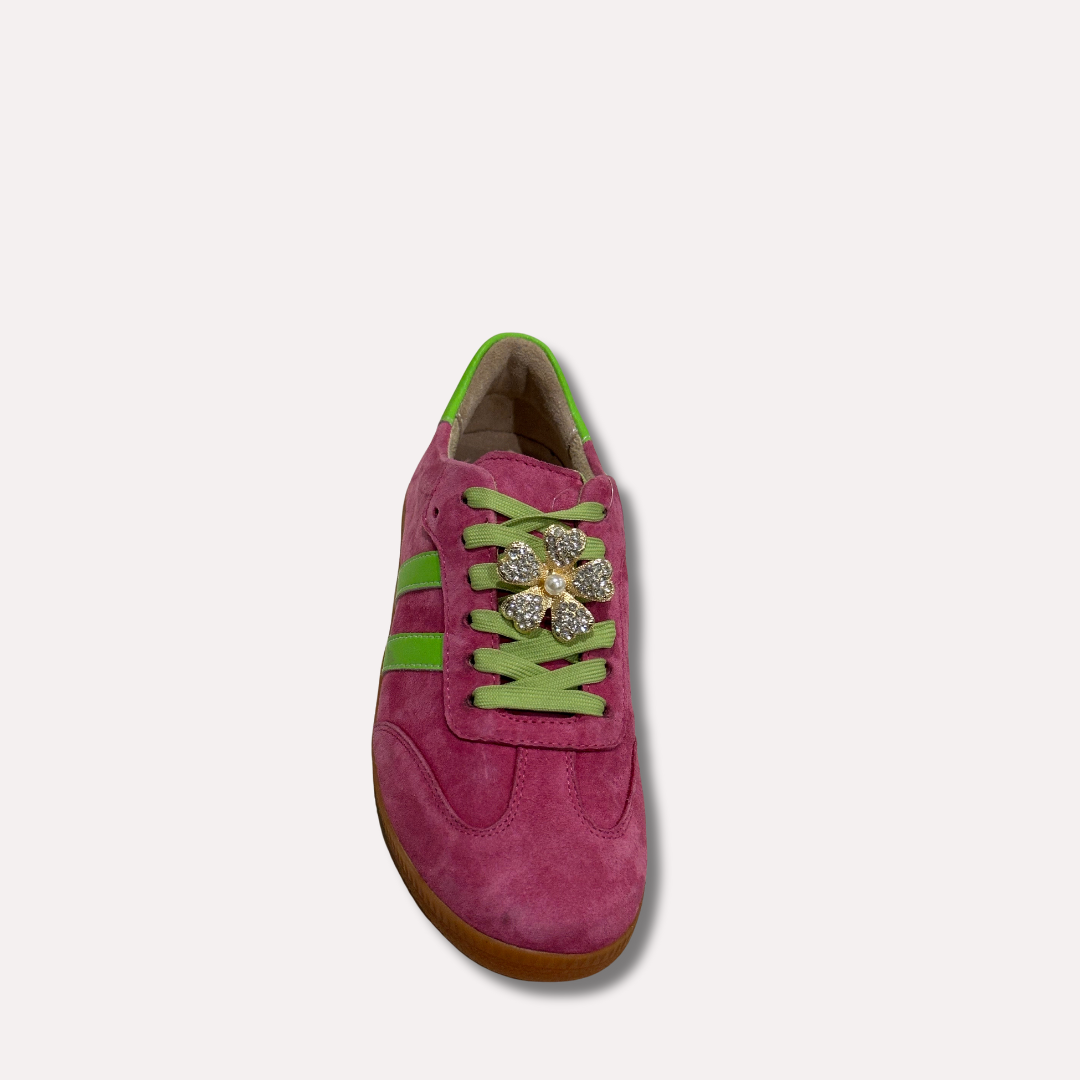 Enhance your footwear with our Large Gold Clover and Pearl Shoe Trims. These beautifully crafted trims feature a stunning gold clover design accented with elegant pearl, adding a touch of sophistication to any shoe. Made with high-quality materials, these trims are a must-have for any fashion-forward individual. (2 in a set)