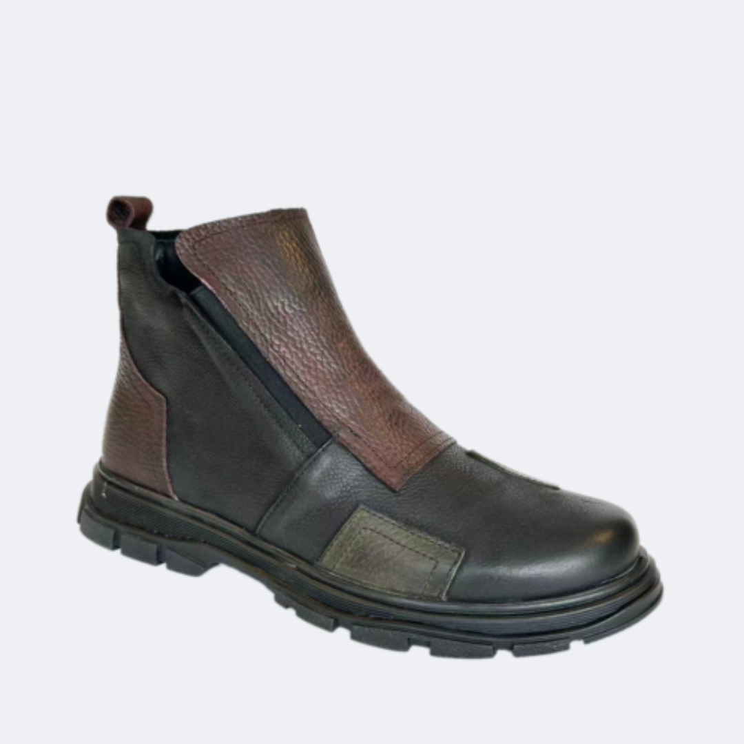 Women’s casual ankle boot from the brand Via Nova Style. Features a bold contrast color design with a premium leather upper and soft textile lining for enhanced comfort. Finished with a practical side zip for easy on and off. A stylish everyday choice with a modern twist.